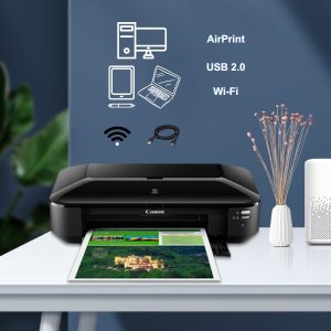 - Canon PIXMA iX6870 là phiên bản nâng cấp, có thêm kết nối WiFi và mạng LAN, cho phép in không dây từ laptop, điện thoại, máy tính bảng, mang lại sự tiện lợi cao hơn cho môi trường làm việc hiện đại.